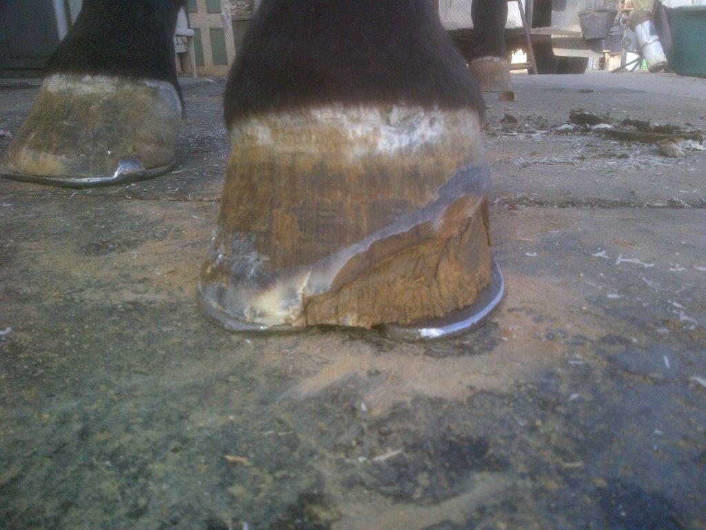 The fundamental problem usually involves the frog and heels of the hoof capsule not being on or close to the same plane. This change in level for the frog and heel limits the frog’s contact with the ground and can reduce the stimulation from the ground surface, causing the frog to atrophy.