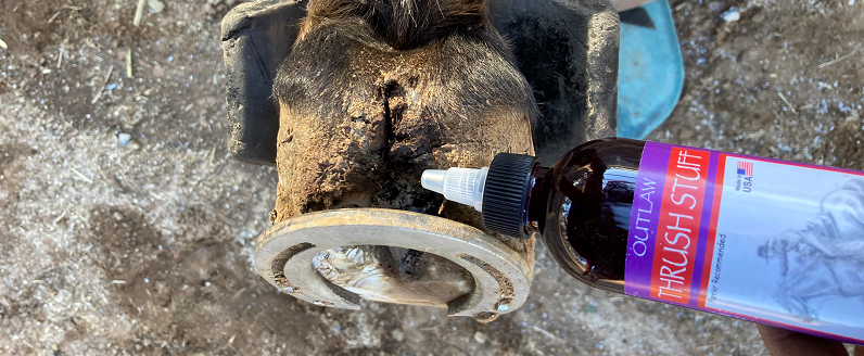 Dry hoof preparations will not penetrate the source but merely cauterize the surface, trapping infection and creating more severe conditions in the hoof. Using Outlaw Thrush treatment for horses is the best comprehensive treatment you can buy.
